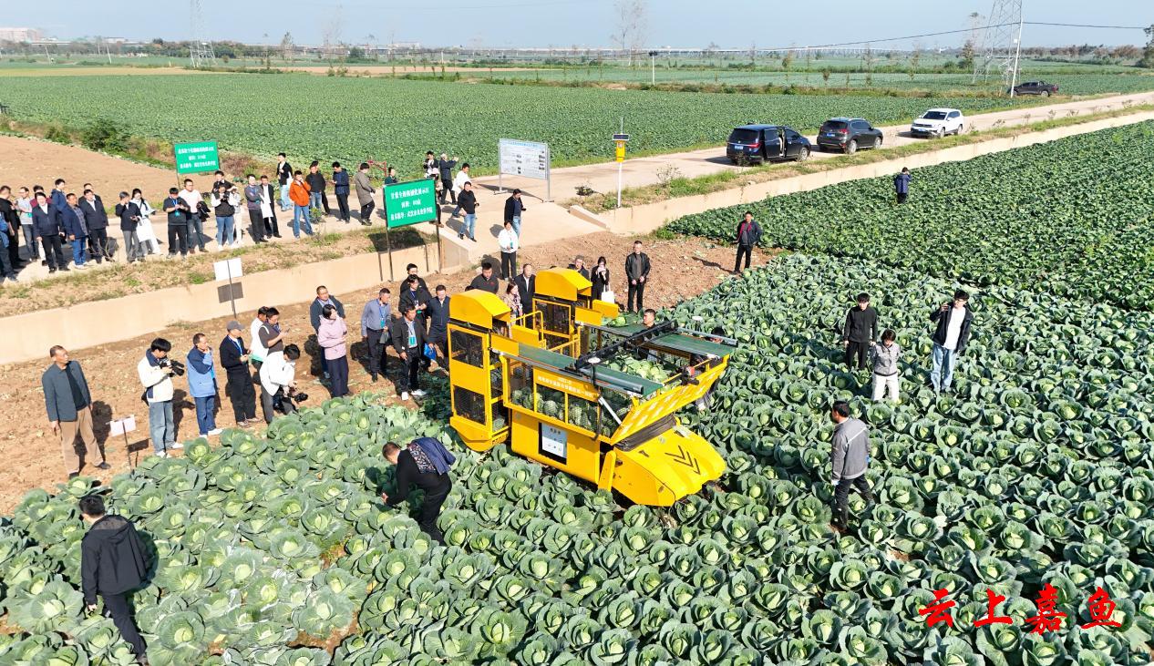 會前,參會人員一同觀摩了嘉魚露地甘藍生產模式及體系“四新技術”展示、嘉魚露地蔬菜健康栽培技術展示、露地越冬甘藍無人化生產模式暨甘藍全程機械化生產裝備現場作業演示,并參觀了潘家灣蔬菜長廊紅色菜園種植、水肥一體化基地。