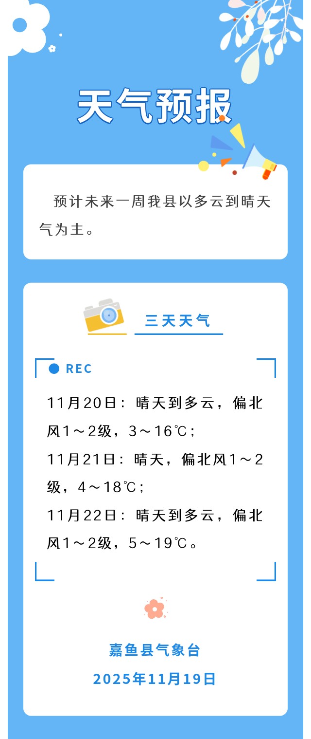 2025年11月19日嘉魚(yú)天氣預(yù)報(bào)