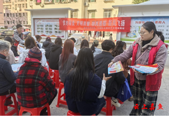 活動(dòng)當(dāng)天,縣發(fā)改局黨員干部、社區(qū)工作人員及志愿者通過(guò)多種形式普及節(jié)約理念。通過(guò)在小湖社區(qū)九棟廣場(chǎng)懸掛橫幅、設(shè)立宣傳點(diǎn),向居民發(fā)放《“節(jié)約糧食 文明餐桌”》宣傳折頁(yè)與環(huán)保手袋,結(jié)合糧食安全國(guó)情,用數(shù)據(jù)和案例講解節(jié)約糧食的重要性,呼吁居民杜絕“舌尖上的浪費(fèi)”;深入社區(qū)餐飲商戶與居民家中,重點(diǎn)針對(duì)婚喪宴席、家庭聚餐等場(chǎng)景進(jìn)行宣傳,倡導(dǎo)商戶提供“小份菜”“半份菜”、提醒顧客剩餐打包,引導(dǎo)居民按需采購(gòu)、合理備餐,養(yǎng)成“光盤”習(xí)慣;依托社區(qū)宣傳欄、居民微信群等陣地,持續(xù)推送節(jié)約糧食知識(shí)與妙招,營(yíng)造“節(jié)約光榮、浪費(fèi)可恥”的社區(qū)氛圍,讓文明餐桌理念深入人心。