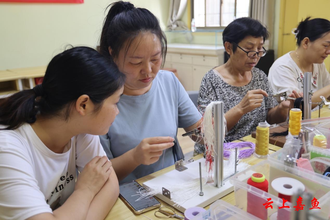 近日,在嘉魚縣嘉年華社會工作服務中心的手工編織工坊里,十幾位媽媽正圍坐在一起,指尖翻飛,線繩在手中穿繞,很快便變成一個個精致的小掛件。有人一邊低頭編織,一邊和旁邊的姐妹輕聲聊天,孩子的學業、家里的瑣事、最新的訂單……伴隨著歡聲笑語,生活與工作在這里自然交織。