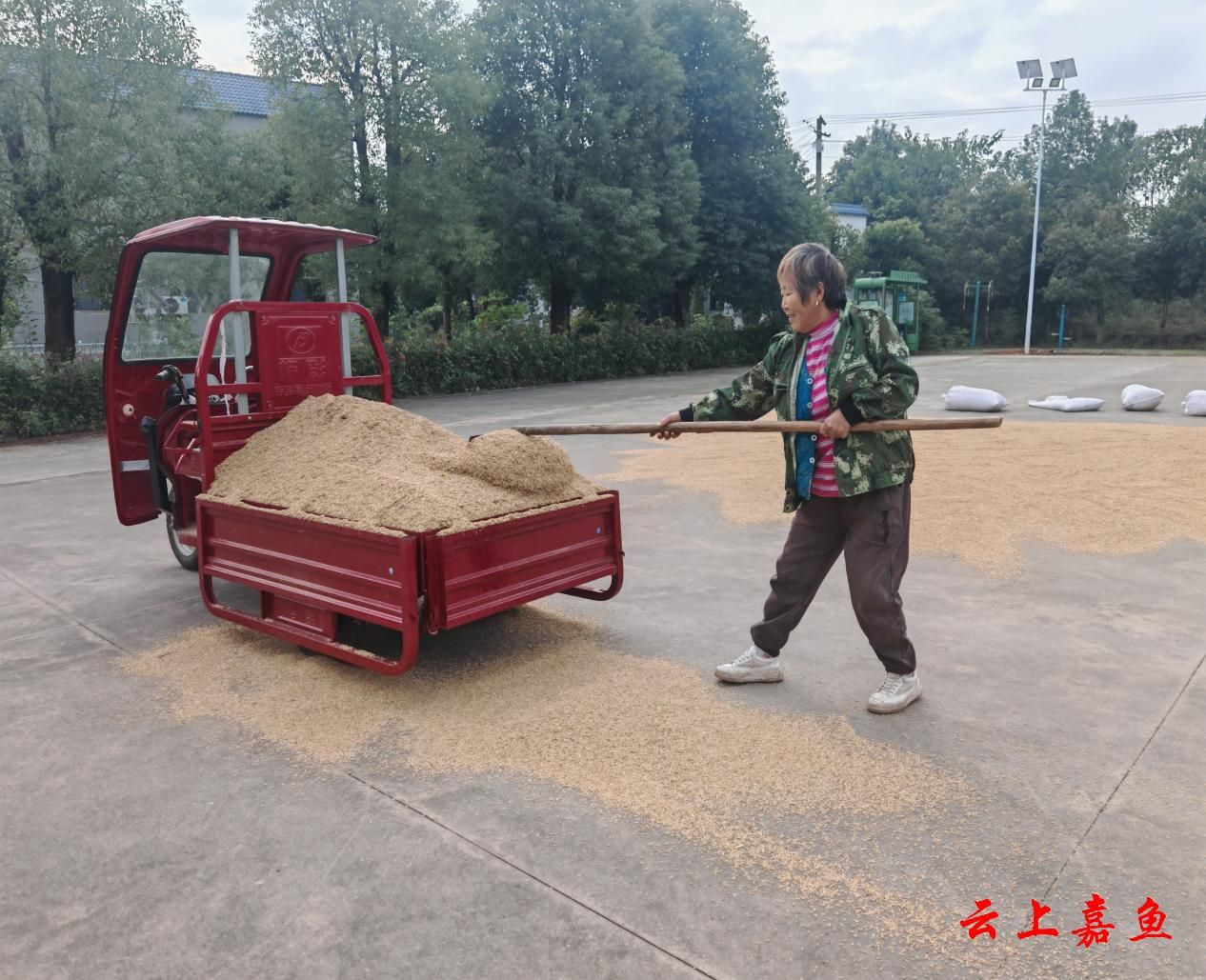 “前段時間一直下雨,門口屋場小,正愁沒地方曬糧呢。村委會開放門前場地,真是解了我們的燃眉之急!”村民黃大娘家就住在村委會旁,一大早,她招呼著老伴一起,用三輪車將前幾天收割的稻谷一車車地運到村委會門前,在村干部的引導下,有序地攤開晾曬。